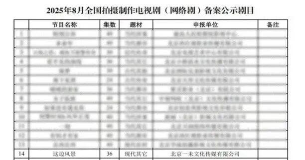 中新网北京10月13日电 近日,国家广播电影电视总局近日公布了一批2025年8月登记的电视剧。